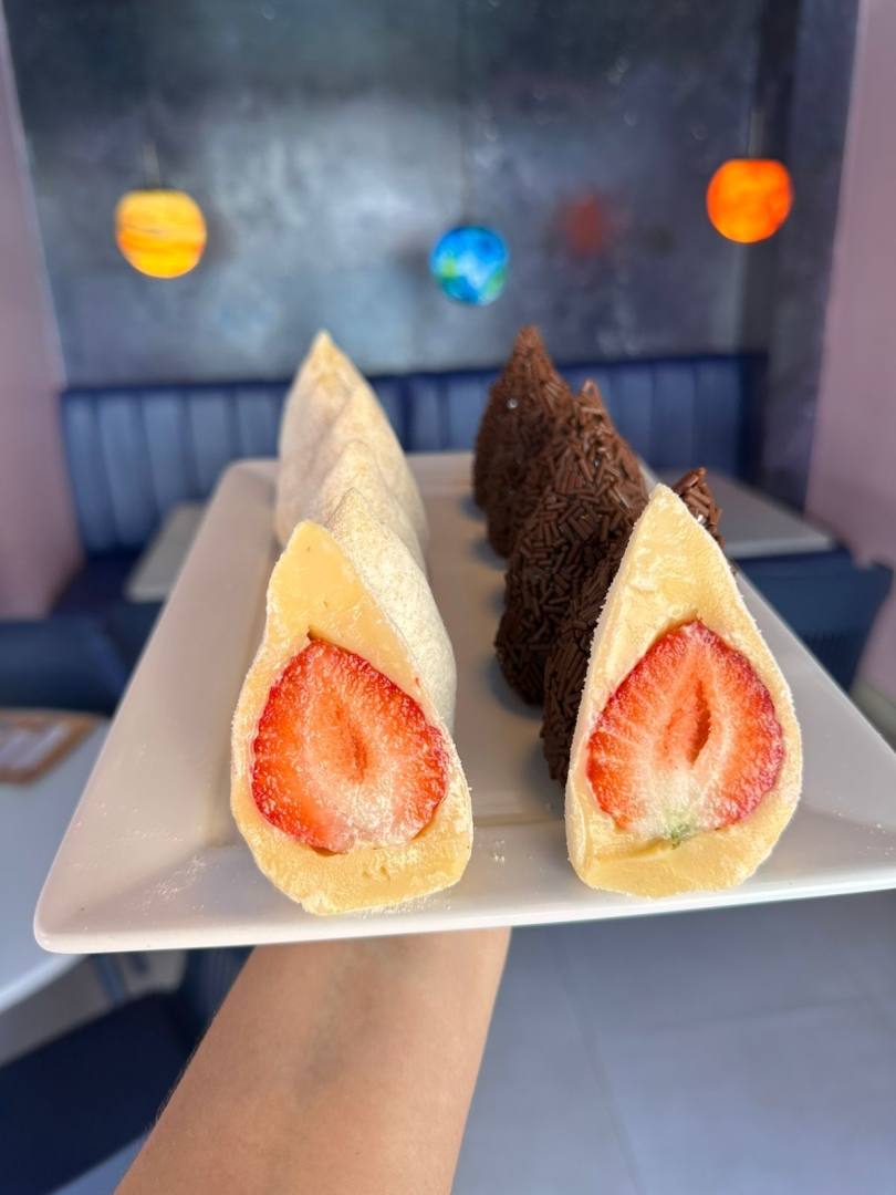 Mousse leve de ninho, creme de ninho , nossa geleia artesanal de morango, morangos e chantininho.